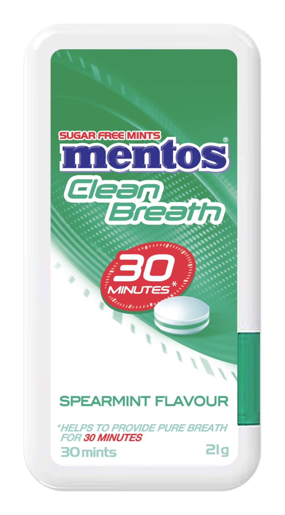 Mentos Clean Breath Sugar Free Mints, Spearmint (12 x 21g)