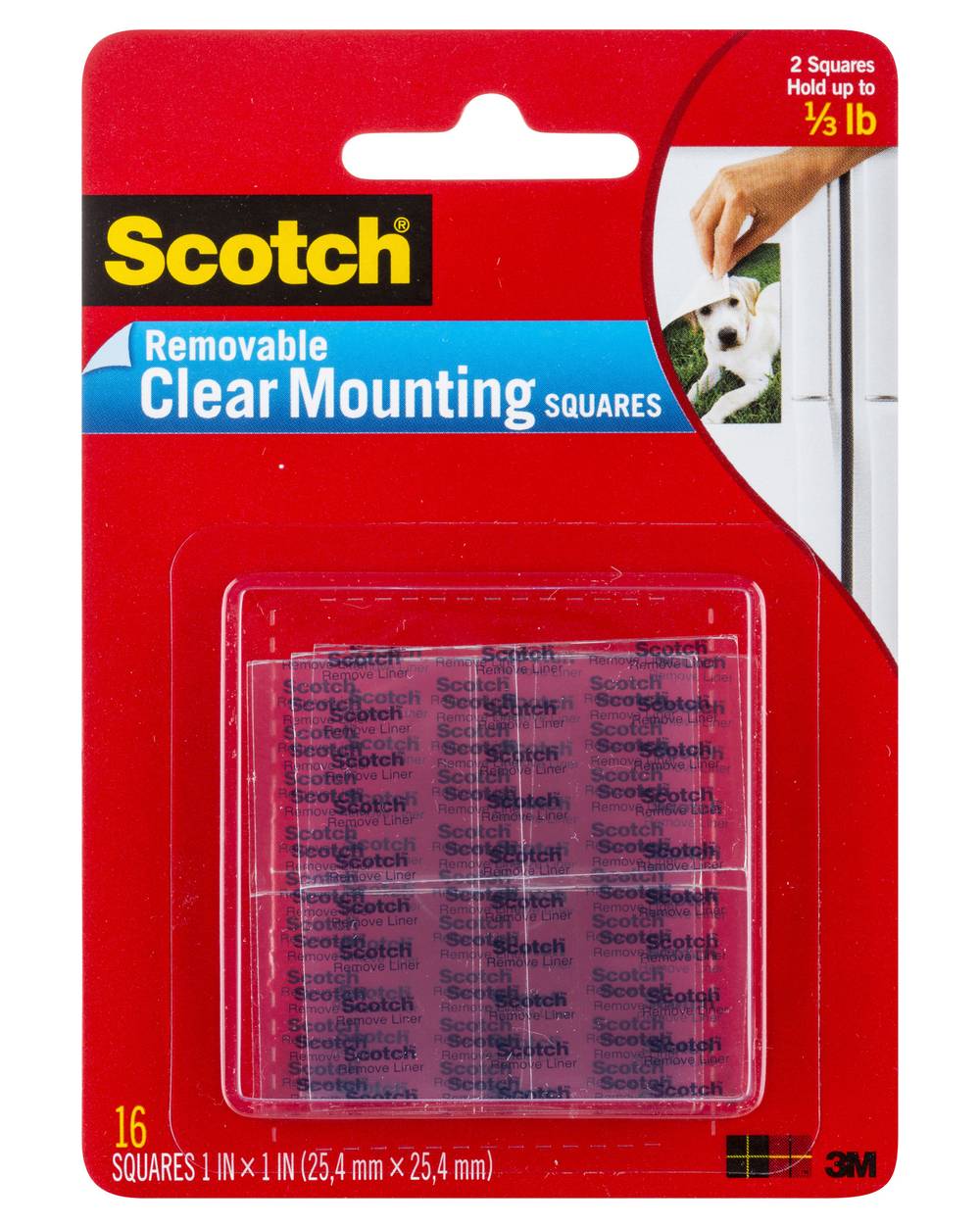 Scotch Removable Mounting Squares, 1x1 in, Clear (16 pack)