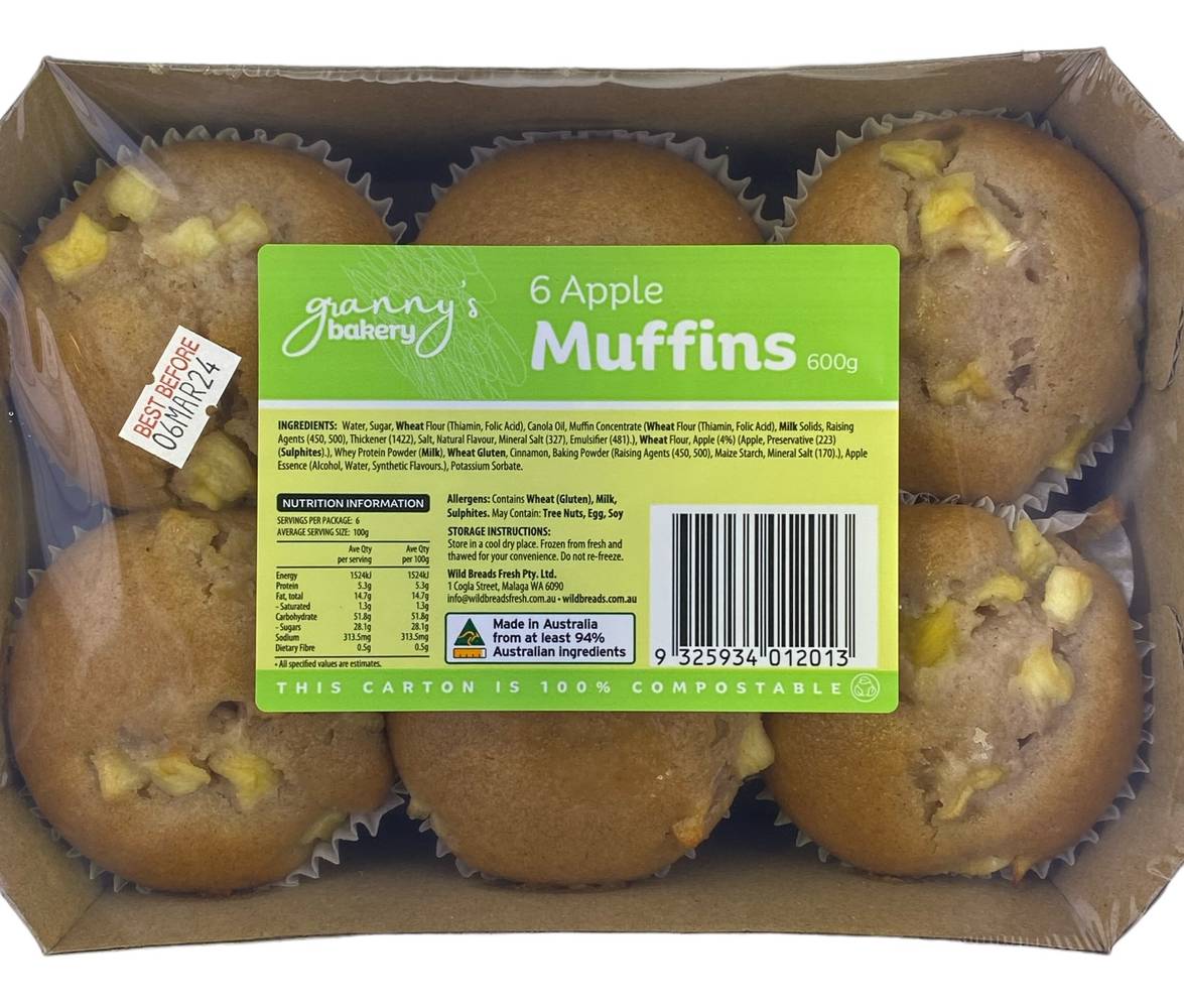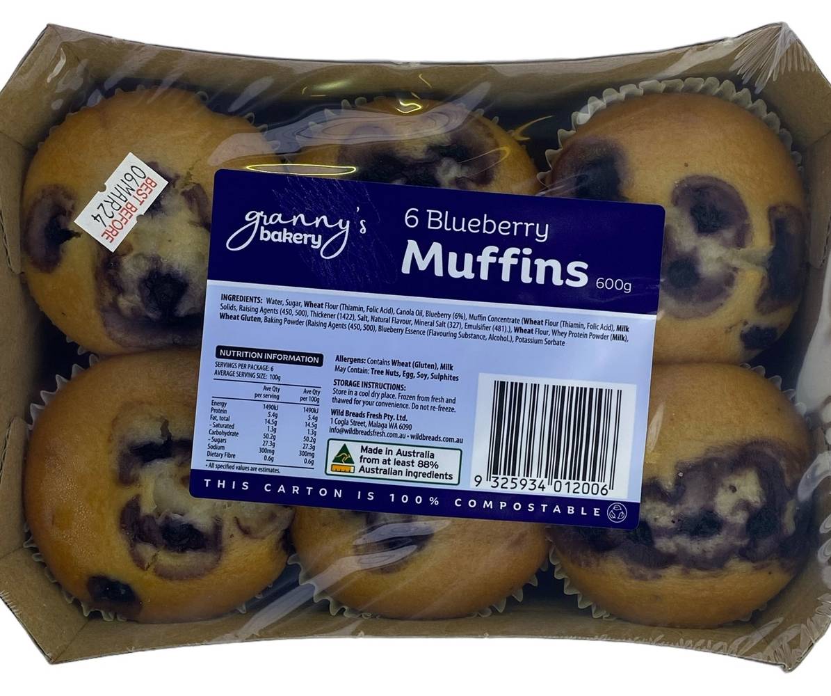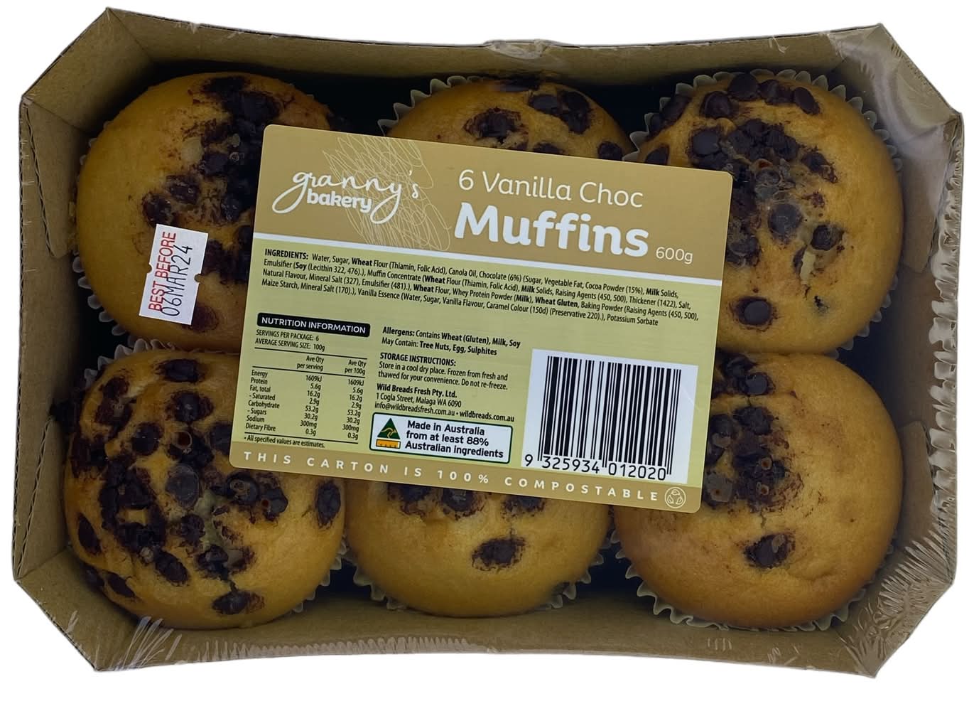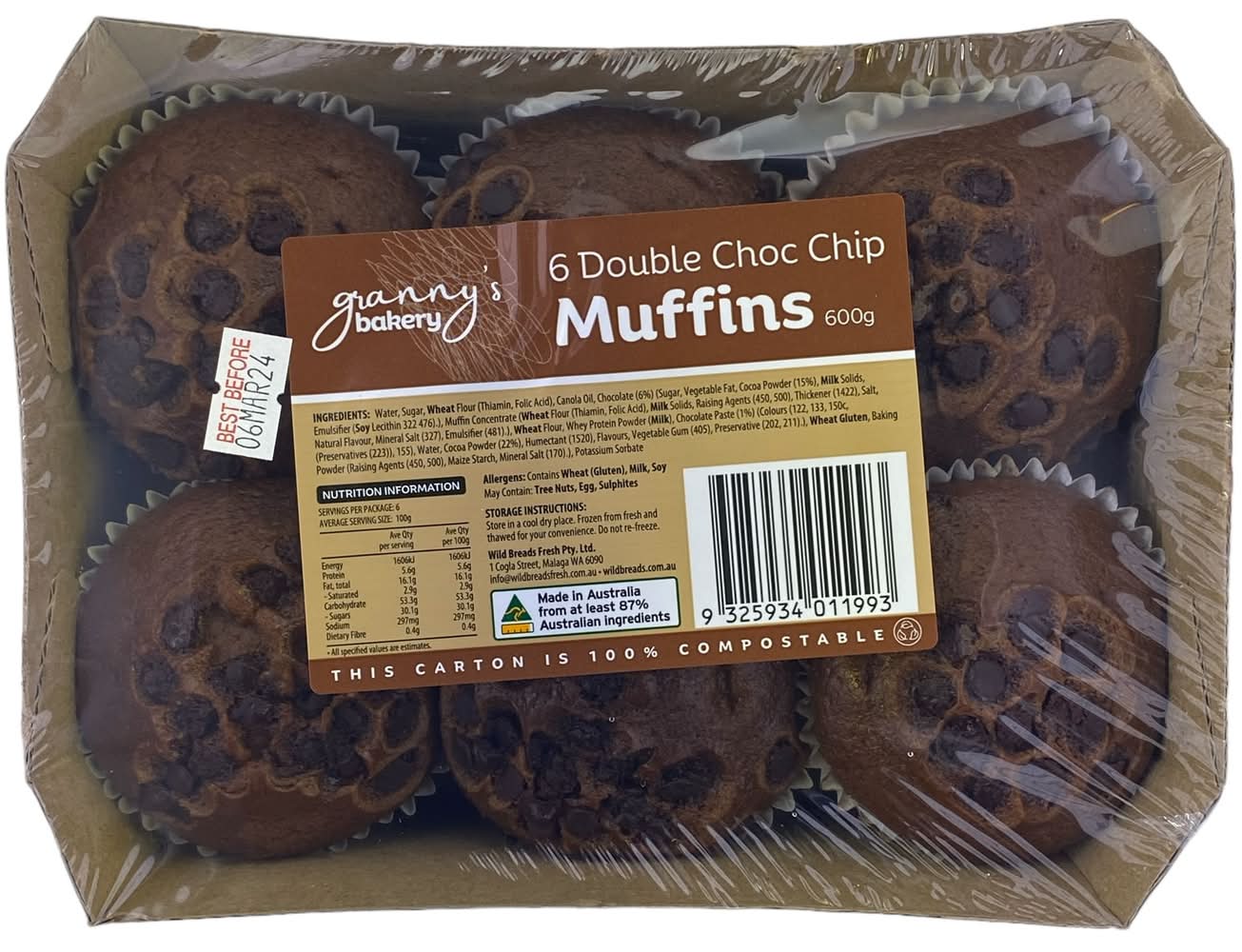 Granny's Bakery Double Choc Chip Muffins (600g, 6 pack)