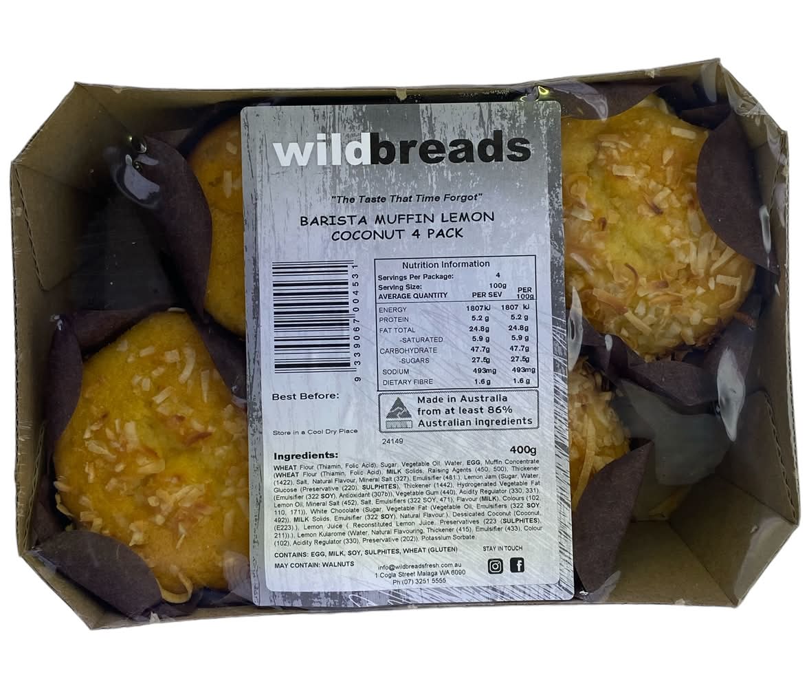 Wild Breads Barista Muffin, Lemon-Coconut (400g)
