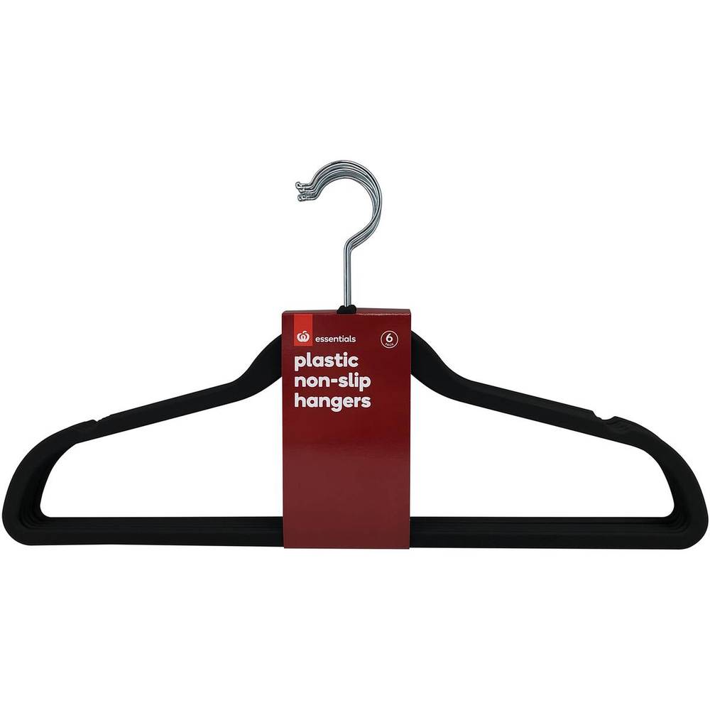 Woolworths Plastic Non-Slip Hangers, Black (6 pack)