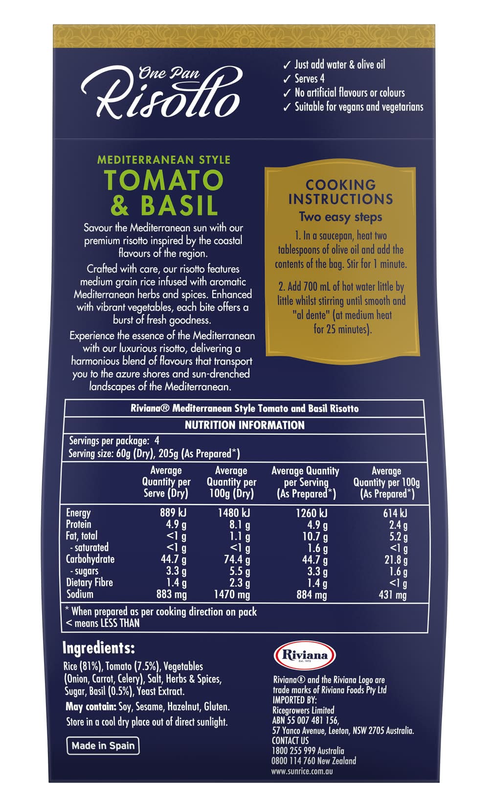 Riviana Mediterranean Style One Pan Risotto, Tomato & Basil (240g)