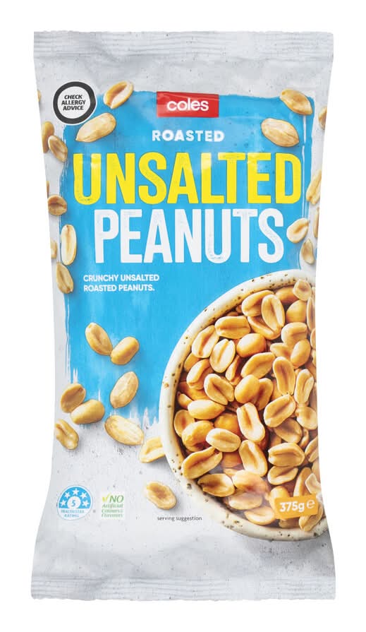 Coles Crunchy Unsalted Roasted Peanuts (375g)