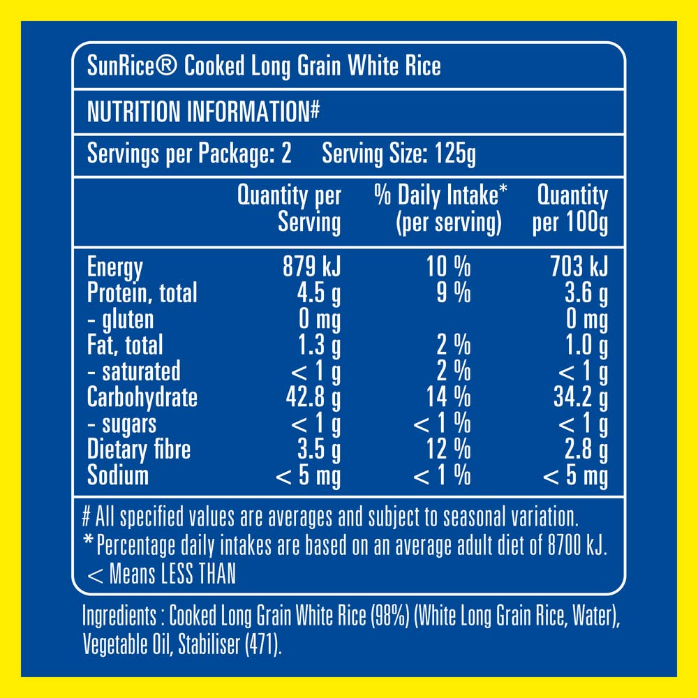 SunRice Steamed Low Gi Long Grain White Rice Microwave Cups (250g)