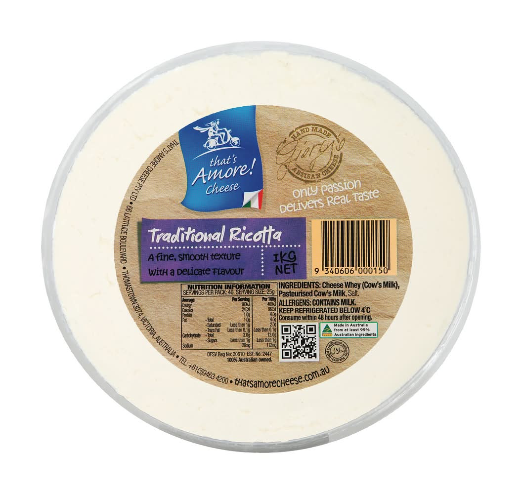 Mediterranean Ricotta Cheese (850g, 12 pack)