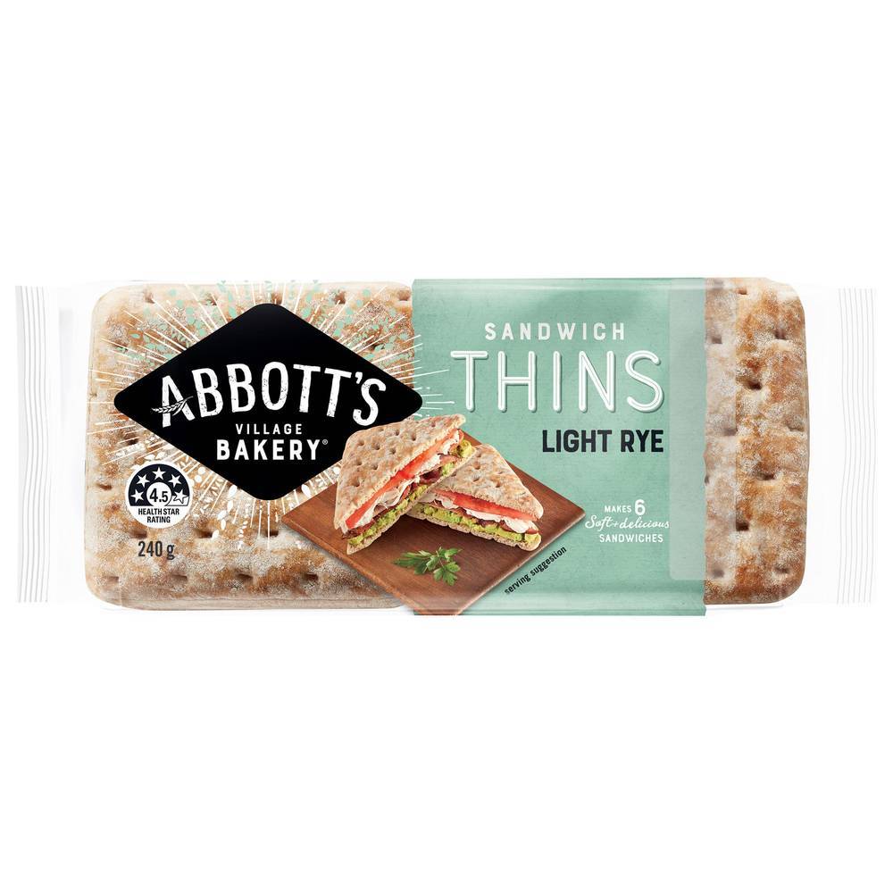 Abbott's Bakery Light Rye Sandwich Thins (240g)