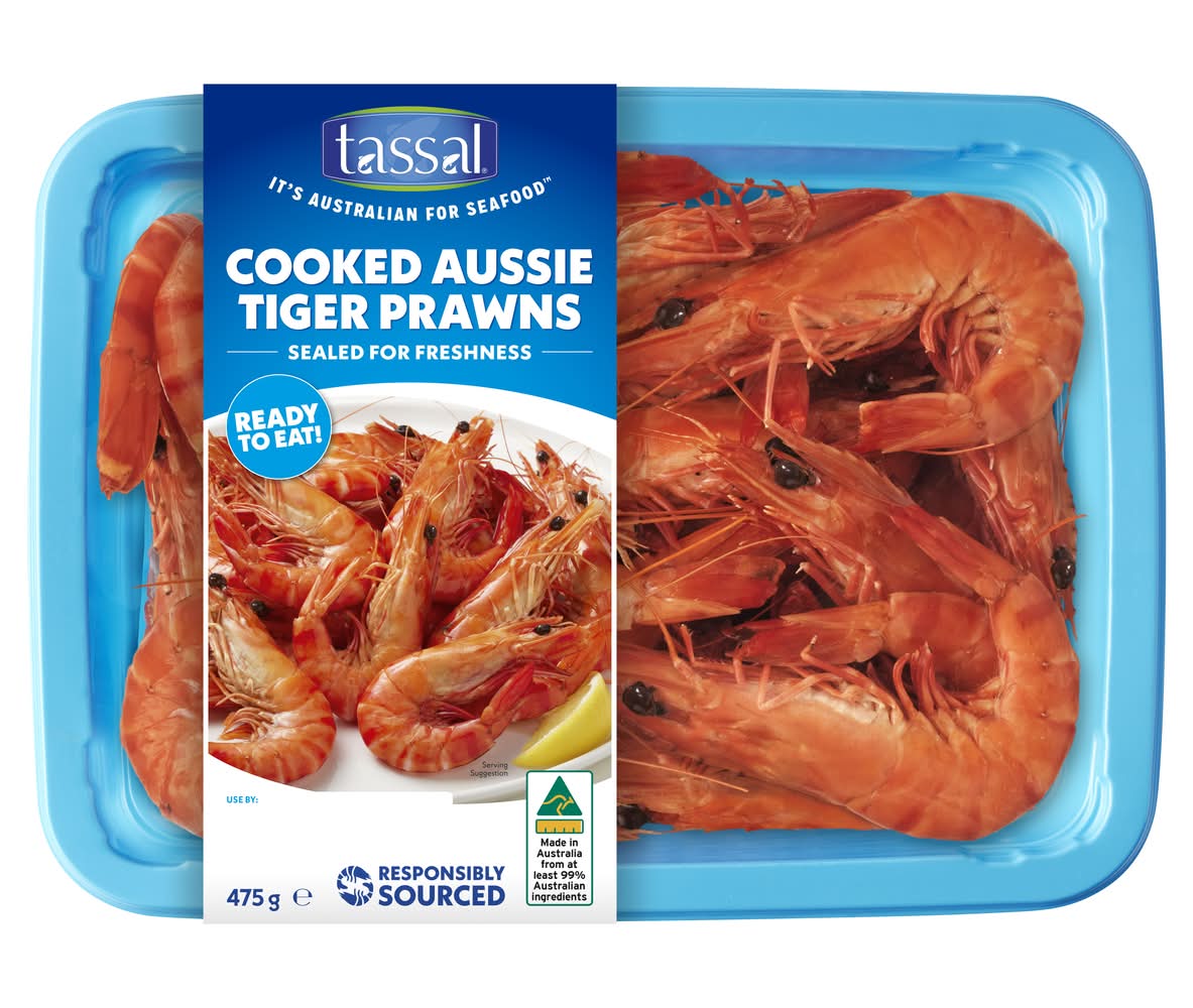 Tassal Cooked Aussie Tiger Prawns (475g, 4 pack)