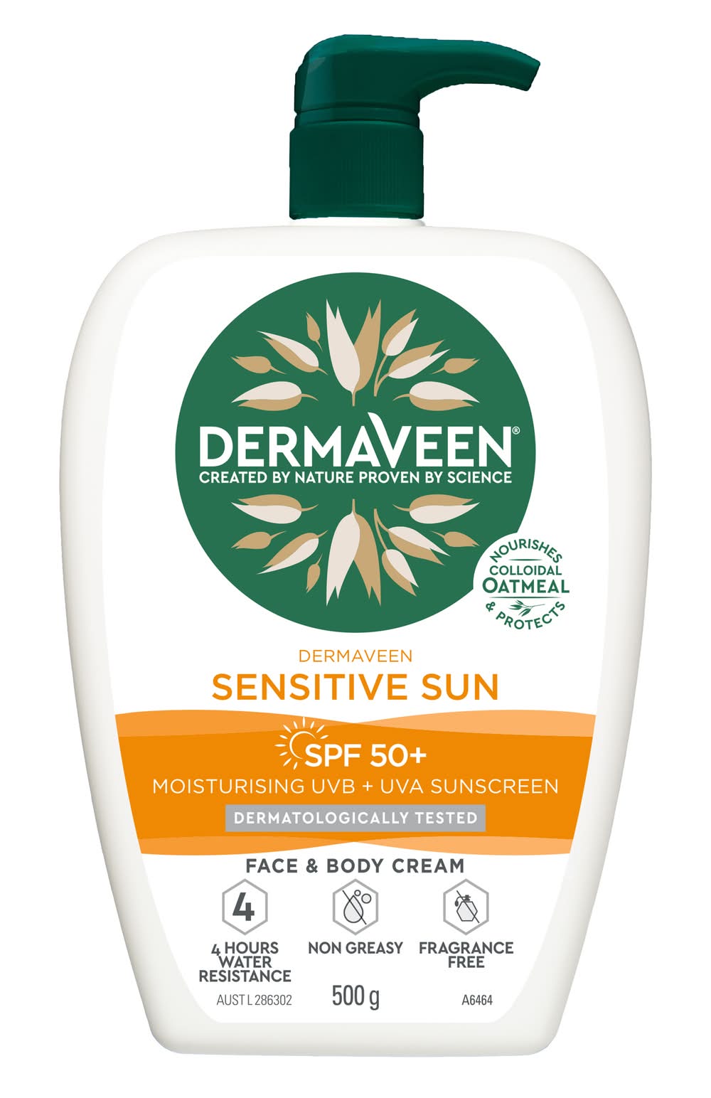DermaVeen Sensitive Sun Spf 50+ Moisturising Uvb + Uva Sunscreen Face & Body Cream (500g)