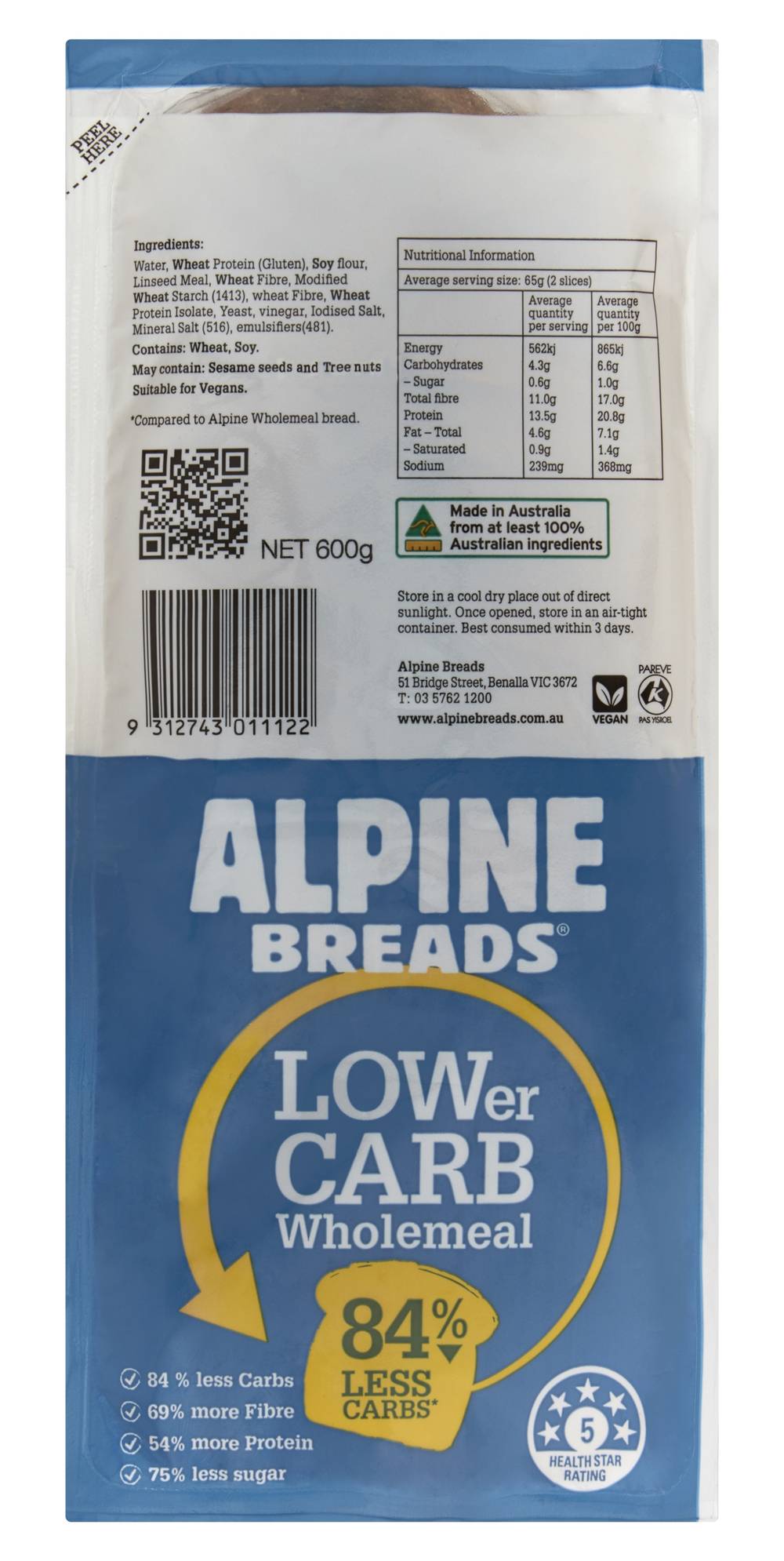 Alpine Breads 84% Lower Carb Wholemeal Bread (600g)