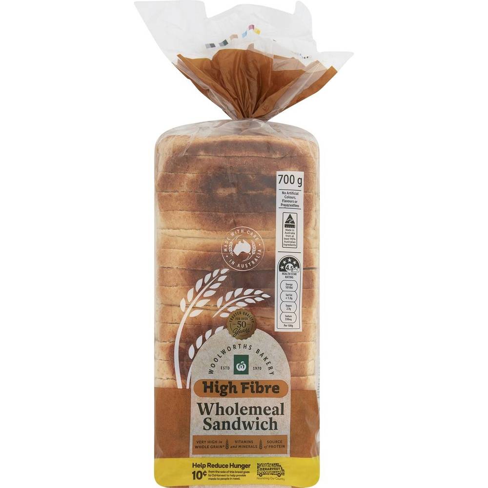 Woolworths Wholemeal High Fibre Sandwich Bread (700g)
