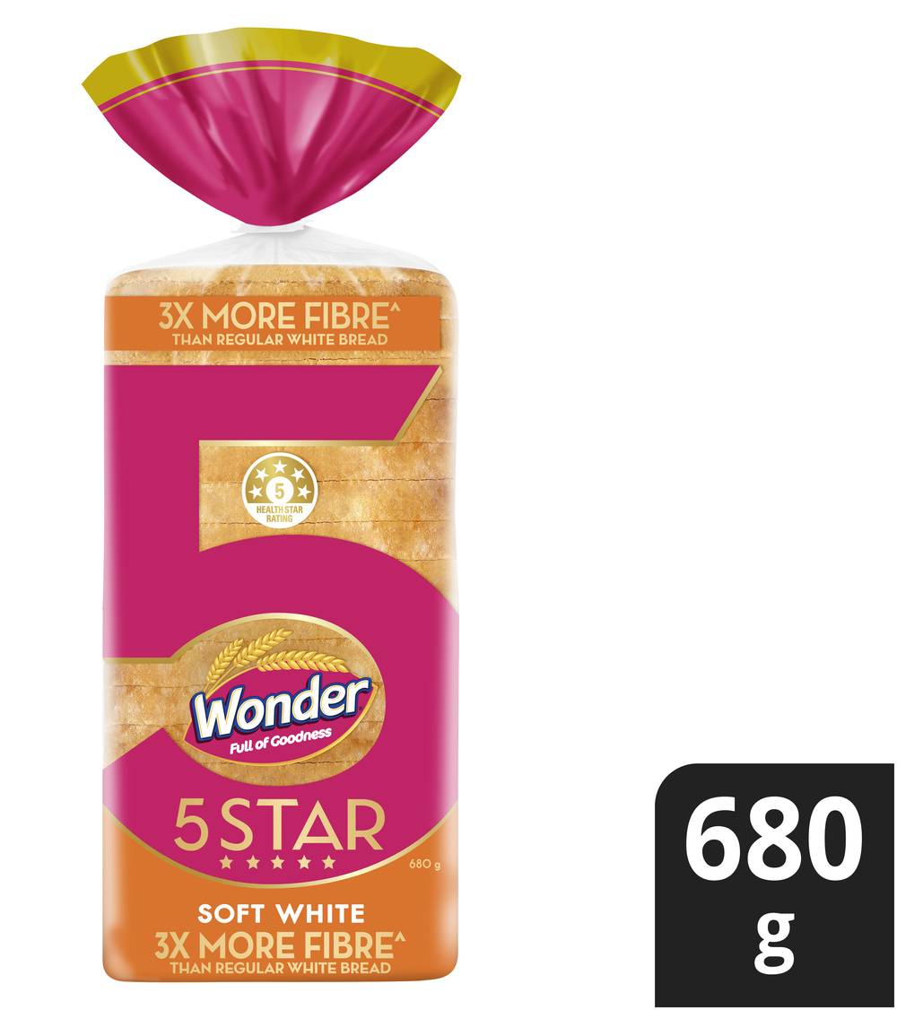 Wonder 5 Star Soft White High Fibre Bread Loaf (680g)