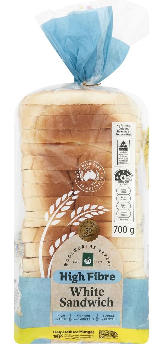 Woolworths Hi Fibre White Sandwich Bread (700g)