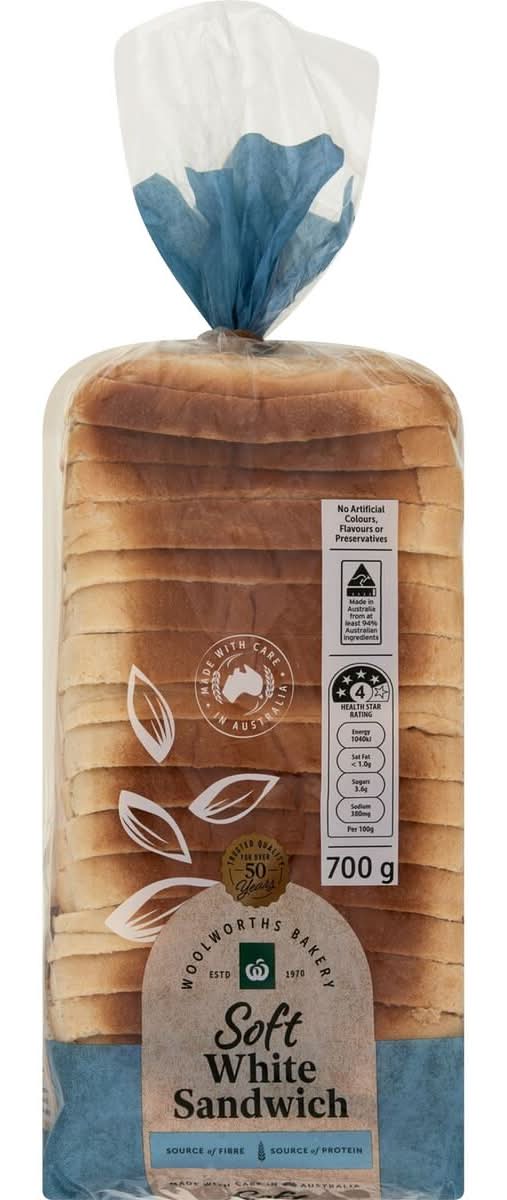 Woolworths Soft White Sandwich Bread (700g)