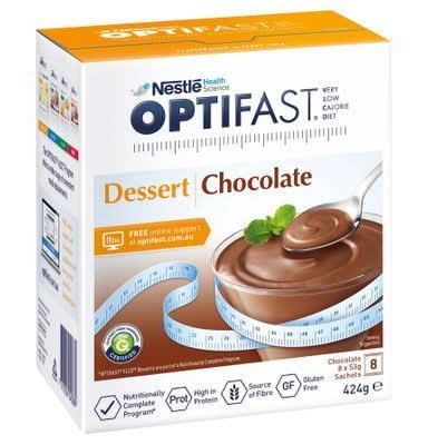 OPTIFAST VLCD Chocolate Desserts (Pack of 8) are part of a nutritionally complete, very low calorie diet program, which contains all of the nutrients required for safe and effective weight loss, including protein to help you preserve lean muscle mass while you lose fat stores. This great tasting Chocolate Dessert is a satisfying and easy to prepare product and can be enjoyed at any time of the day. For additional support on the OPTIFAST VLCD Program, become a member at www.optifast.com.au. The online support will help you set up your weight loss goals, meal plans and help you track your progress. So start your journey towards a healthier future with the OPTIFAST VLCD Program. -- Incorrect use may be harmful. Always read the label and follow the directions for use. If symptoms persist see your healthcare professional. Pack size: 8