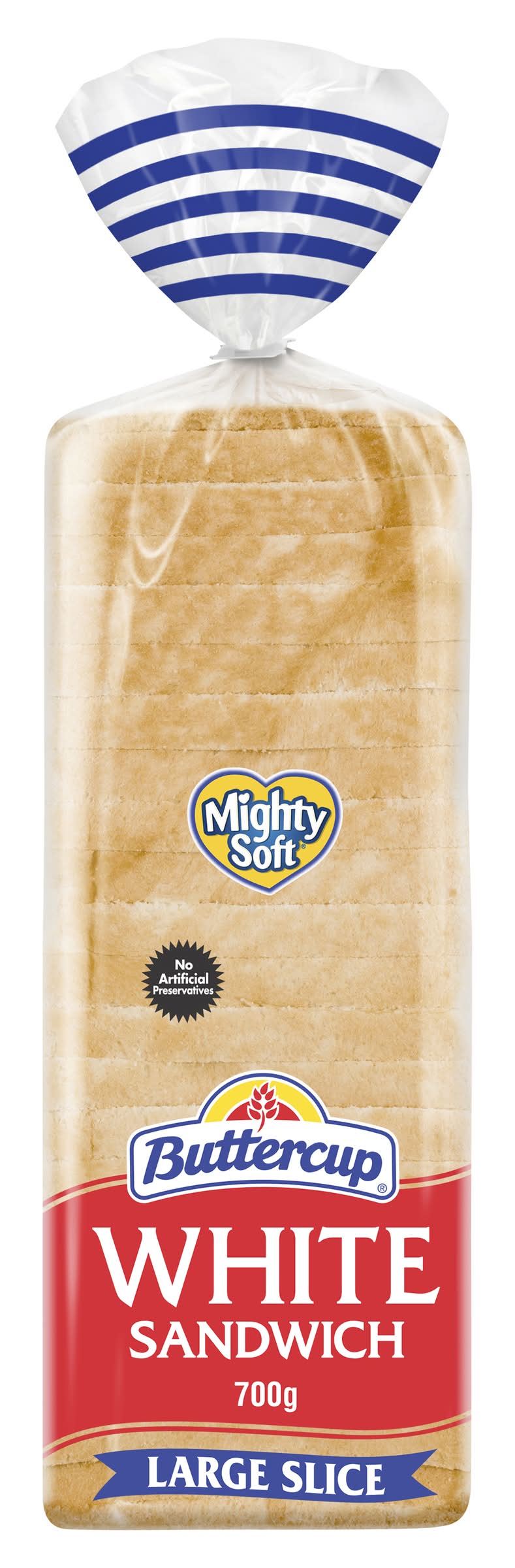 Buttercup White Sandwich. Large delicious slices of white bread with no artificial preservatives.