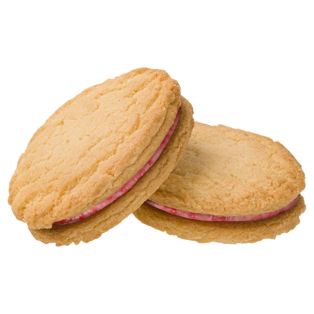 Ingredients: Wheat Flour, Sugar, Vegetable Oil (Emulsifier (Soy Lecithin), Antioxidant (E307b from Soy)), Jam (5%) (Sugar, Apple Puree, Glucose, Raspberry Juice, Food Colour (E120), Gelling Agent (Pectin),, Food Acids (E330, E331), Flavour), Desiccated Coconut (1%), Wheat Starch, Salt, Goldn Syrup, Honey (0.3%), Baking Powder, Eggs, Emulsifier (Soy Lecithin), Flavour. Contains: Tree Nuts, Milk, Sesame, Peanuts. Contains Wheat, Egg, Soy, Gluten