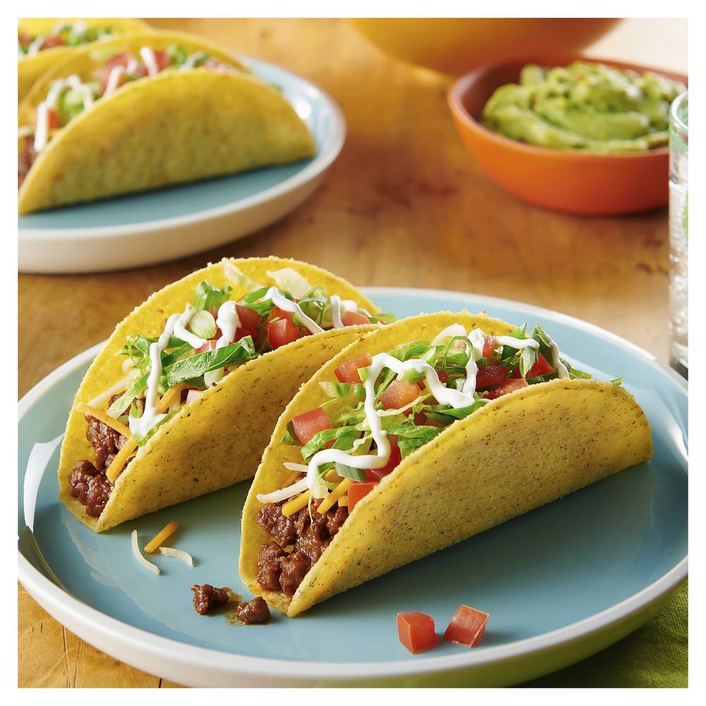 The perfect blend of tomatoes, cumin, and garlic adds delicious Mexican flavors to your favorite tacos. Just sprinkle the taco seasoning mix on lean minced beef, add 1 onion, then follow the instructions on the back of the pack. After heating the taco shells and stuffing them with your filling, you'll have made ready to eat Mexican tacos in less than 25 minutes ideal for Taco Tuesday. Don’t forget to top with guacamole, cheese, sour cream, and salsa. Vegetarian No problem. Simply swap the meat for beans. Perfect for a midweek Mexican feast or weekend get-togethers, share the rich flavors of Mexican cuisine with all your family and friends. Packaging: Reusable