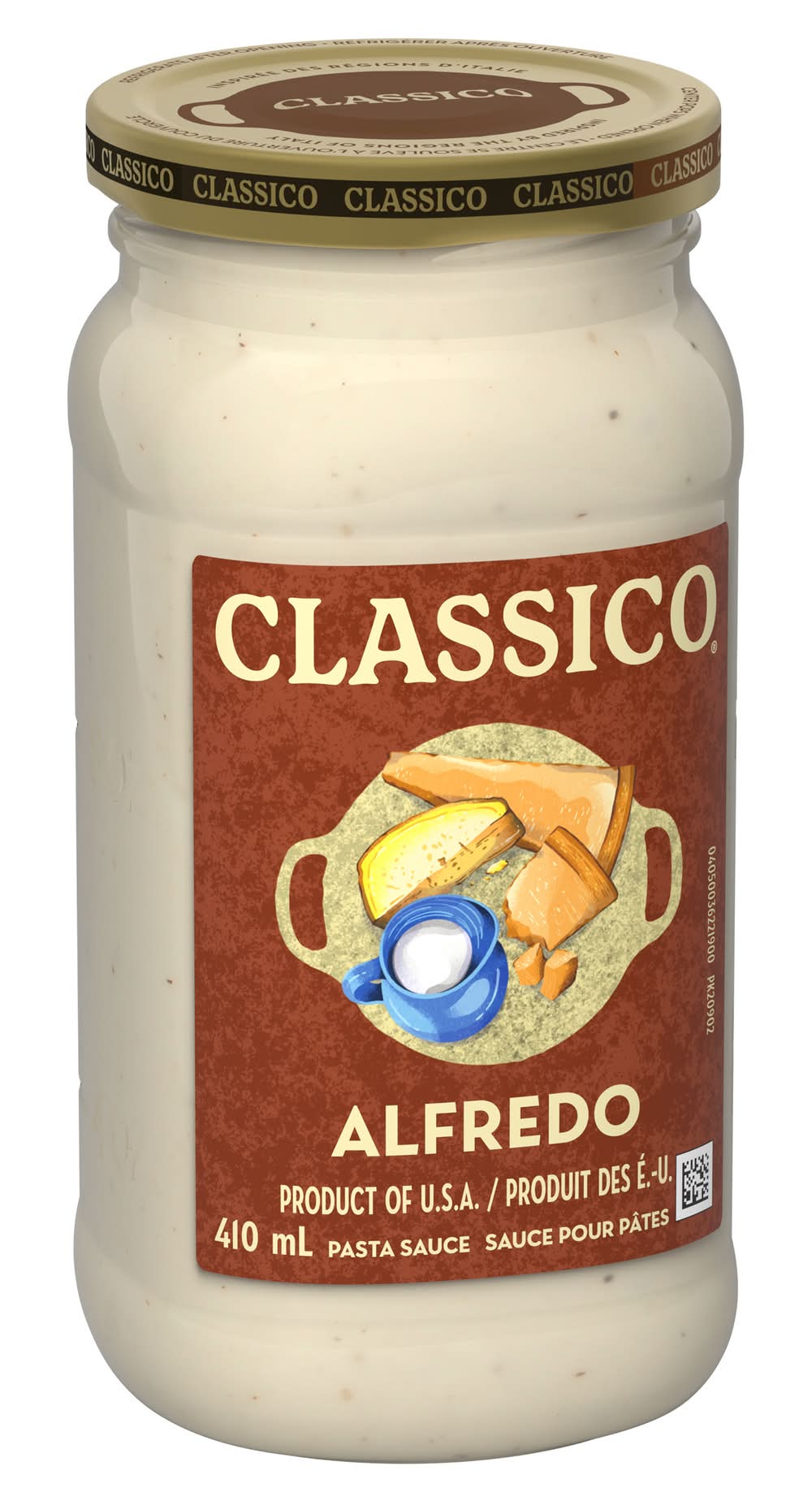 Classico pasta sauces are second only to homemade. Our Alfredo sauce is made with a velvety Parmesan and cream recipe. Serve our sauce over fettuccine, make delicious stuffed shells or layer it between noodles in your lasagna. You can even use it as a dipping sauce for garlic bread and mozzarella sticks. Taille: 410.0 ML