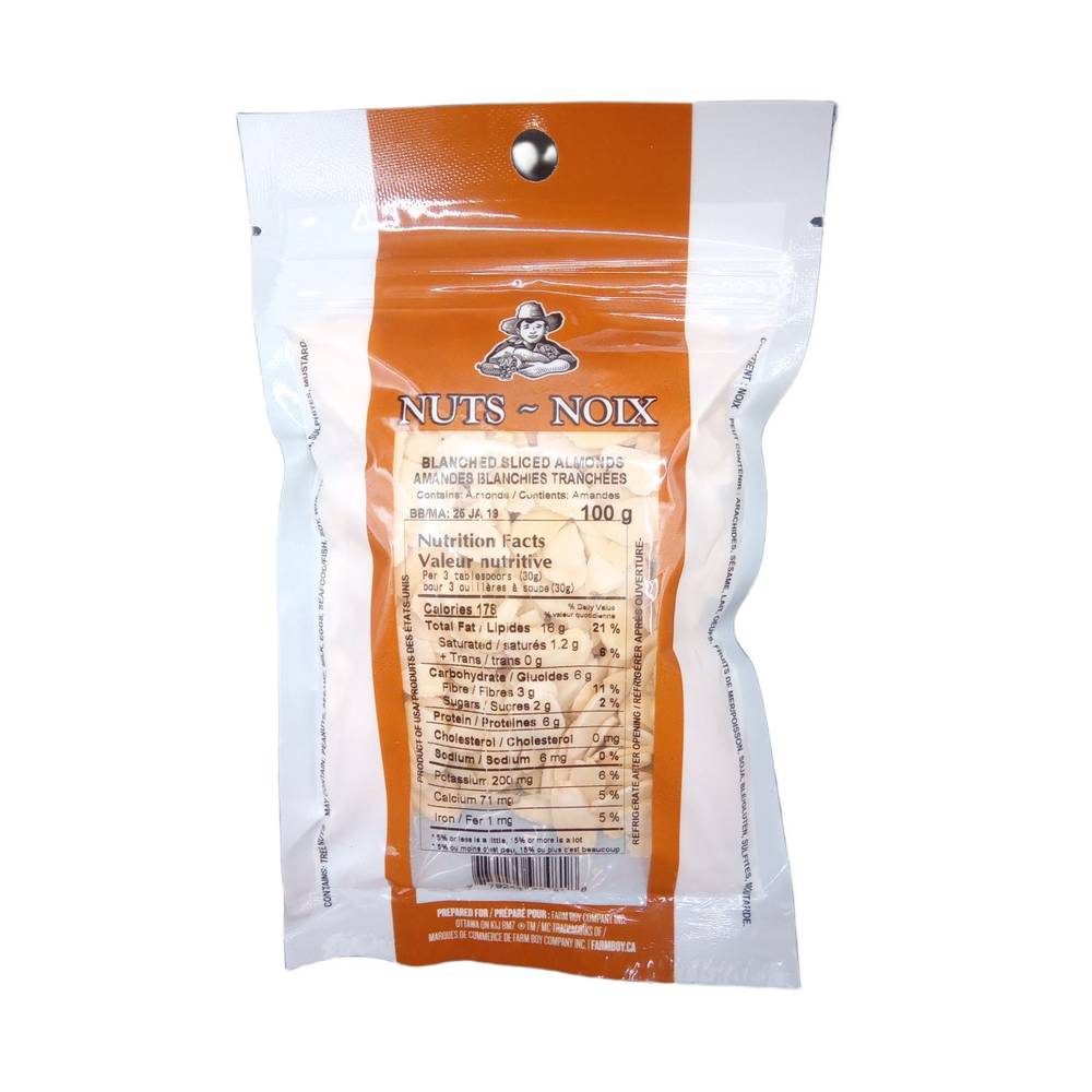 Farm Boy Nuts-Noix Sliced Blanched Almonds (100 g)