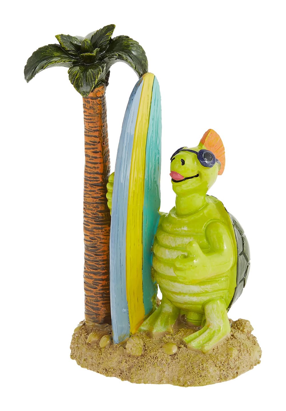 Top Fin Tropical Surfing Turtle Aquarium Ornament, Multicolor