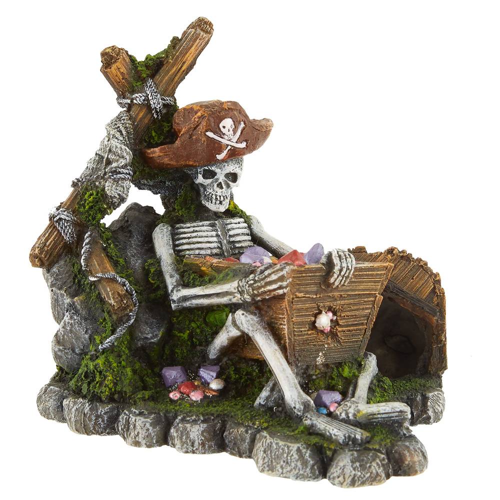 Reveal Pet Food Skeleton Pirate Aquarium Ornament