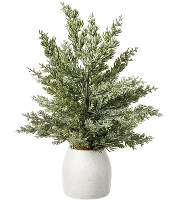 Life at Home Potted Snowy Pine Tree, 12x12x18 in, Green/White