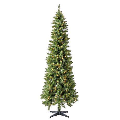 Holiday Time Shelton Pre-Lit Cashmere Pencil Fir Artificial Christmas Tree, 7 ft, Green