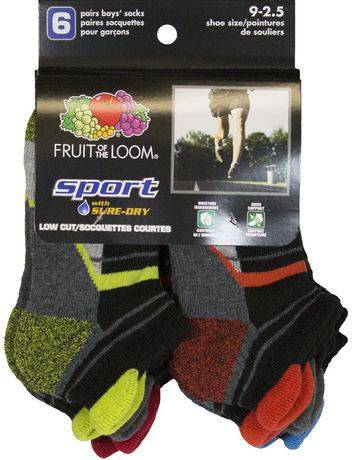 Fruit of the Loom Boys' Sport Low Cut Tabs Socks - 6 Pairs