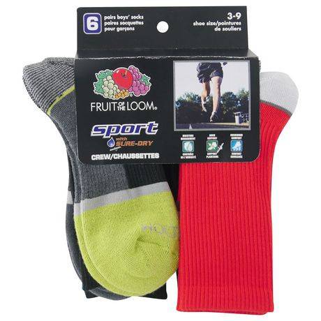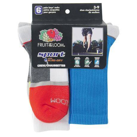Fruit of the Loom Boys' 6 Pair Sport Crew Socks