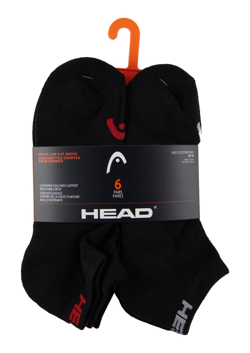 Head Athletic Low-Cut Socks, Men, Size 10-13, Black Mx1 (6 ct)