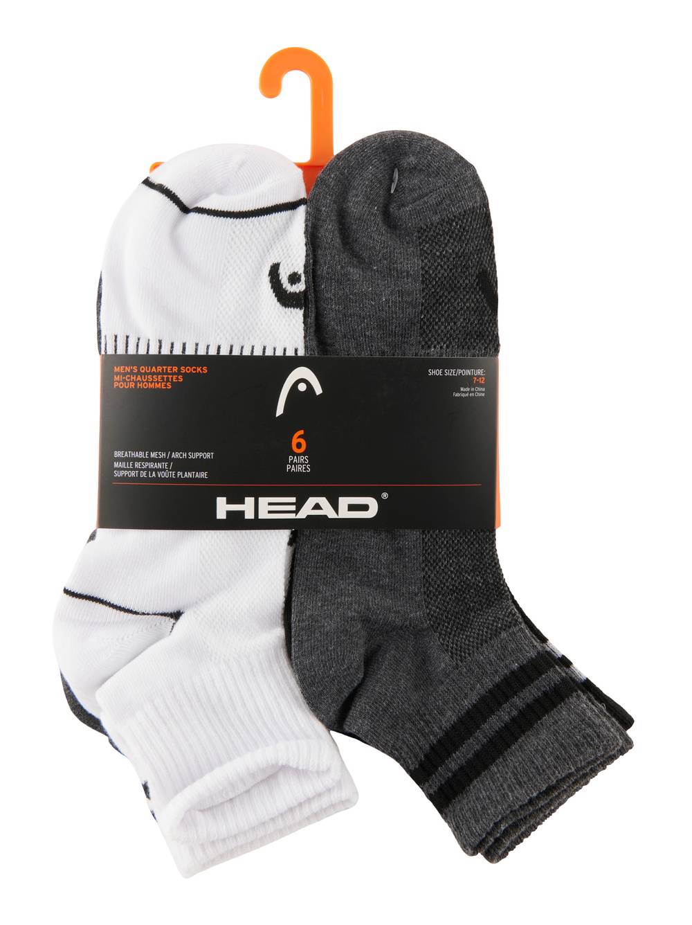 Head Quarter Crew Athletic Socks, Men, White-Black (6 ct)