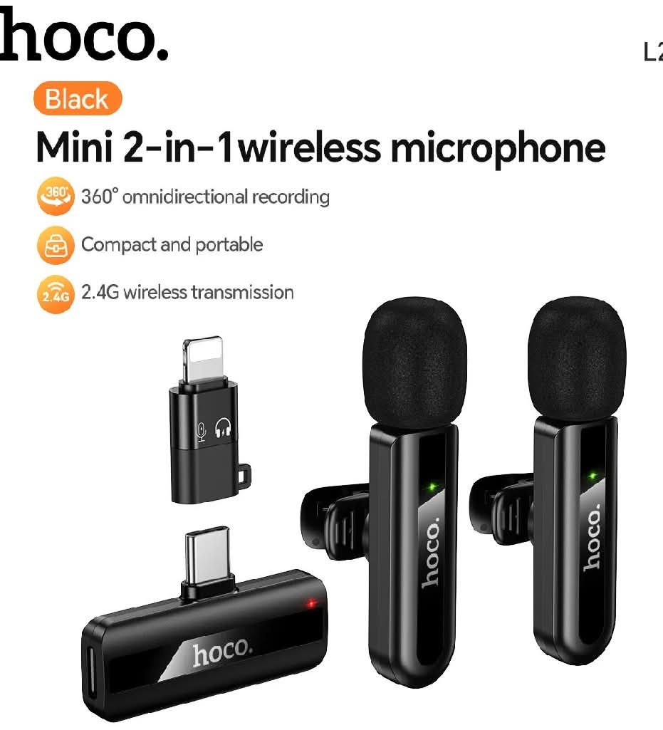 HOCO Mini 2-in-1 Wireless Microphone L20a, Black