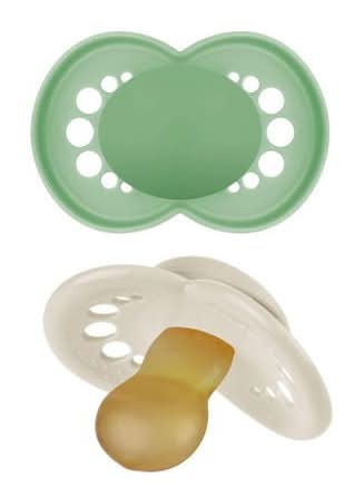MAM 6M+ Latex Natural Rubber Pacifier, Green-Neutral (2 ct)
