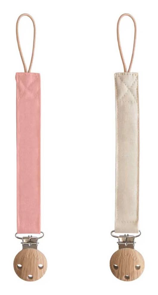 Mushie Linen Pacifier Clip, Dusty Rose-Shifting Sand (2 ct)