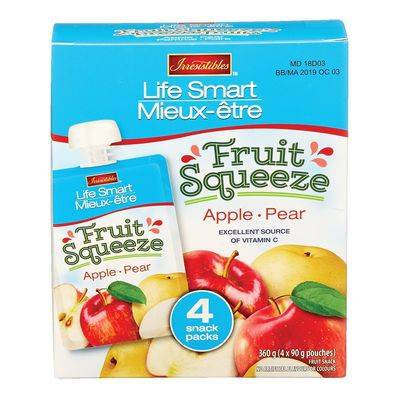 Irresistibles Apple and Pear Fruit Squeeze Pouches, Life Smart (4 x 90 g)
