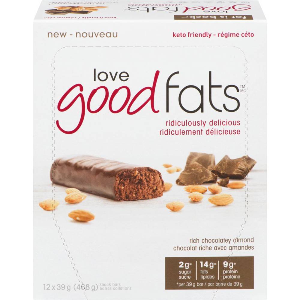 Love Good Fats Rich Chocolatey Almond Keto Bars (12 x 39 g)