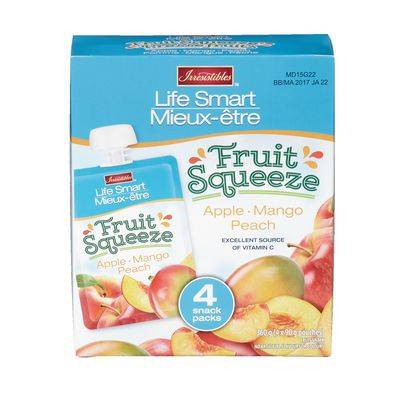 Irresistibles Apple, Mango & Peach Fruit Squeeze Pouches, Life Smart (4 x 90 g)