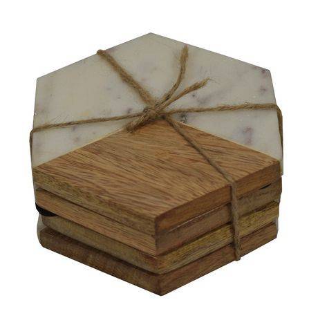 Hometrends Wood and Marble Coaster Set
