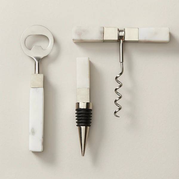 Oui Wine Tools White Marble/Silver Set