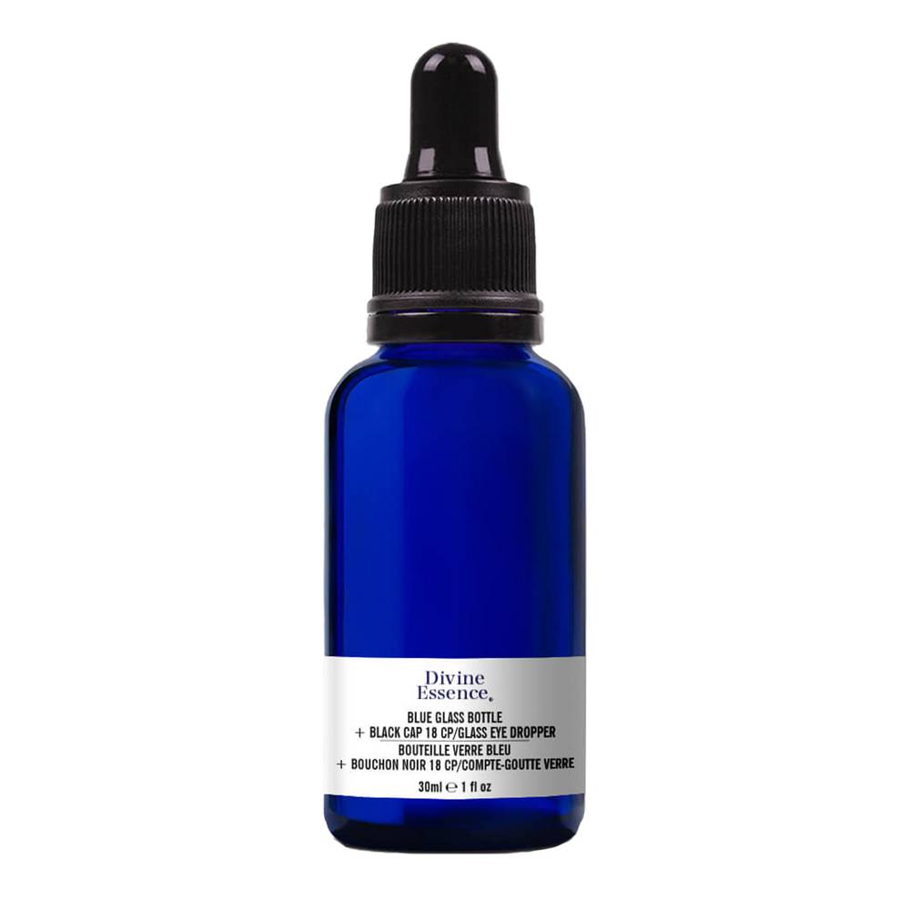 Divine Essence Empty Glass Bottle Dropper, Blue (30 ml)