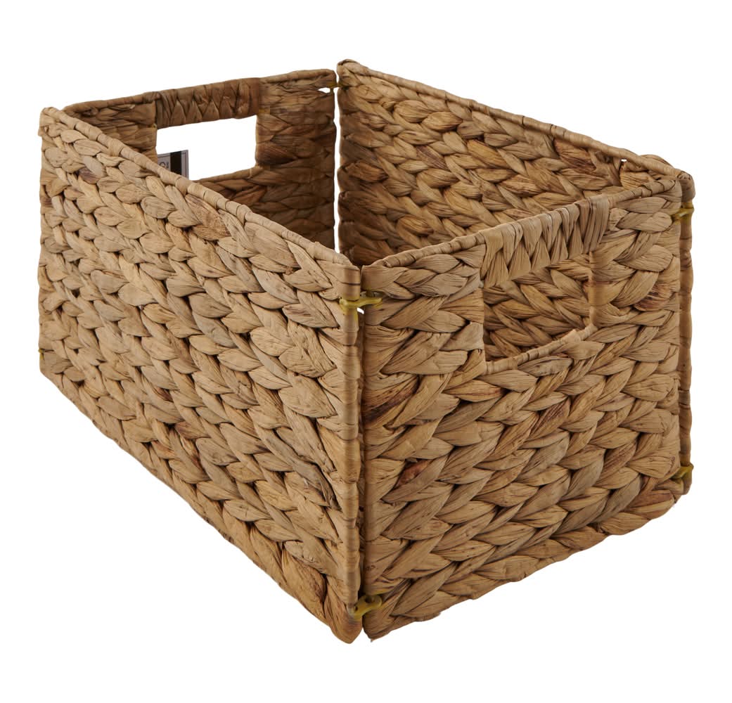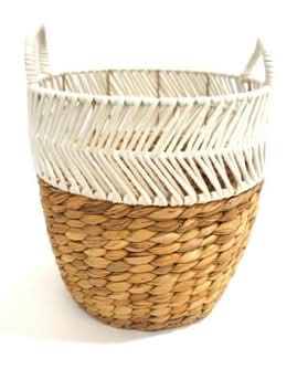 Hometrends Woven Fabric Rope & Water Hyacinth Storage Basket, S, White/Tan