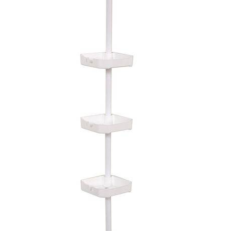 Mainstays Tub and Shower Tension Pole Caddy, 3 Shelf, White