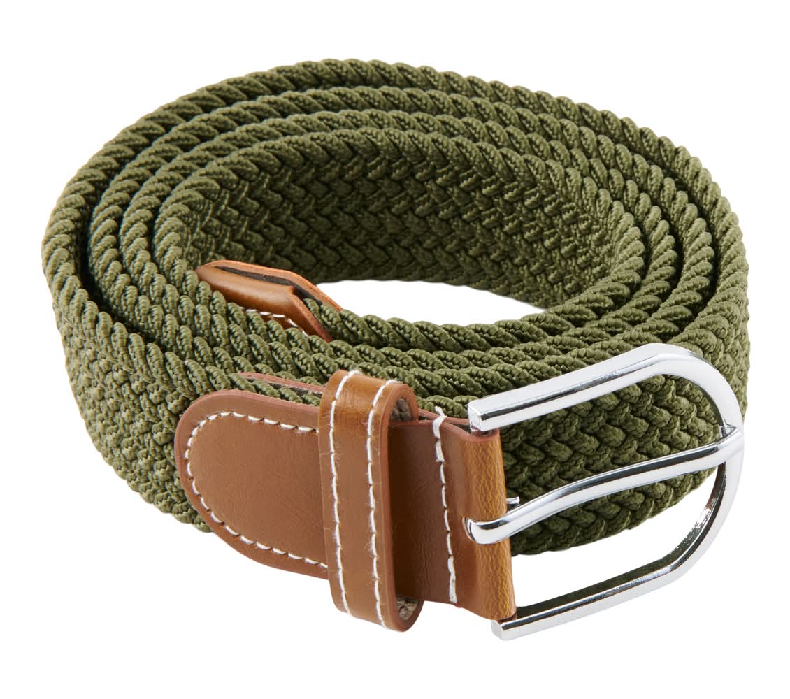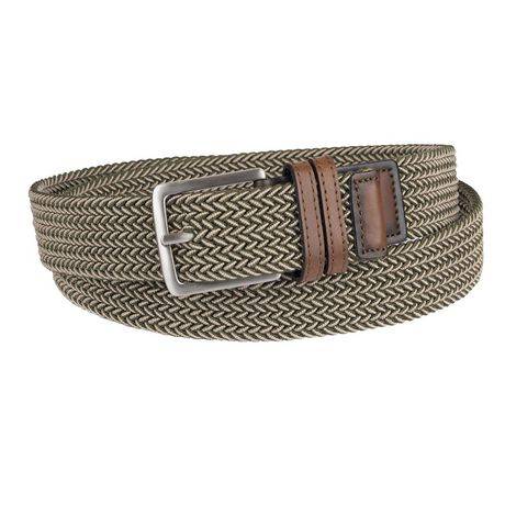 Arrow Stretch Fabric Braid Leather Trim Belt, XL, Olive/Khaki