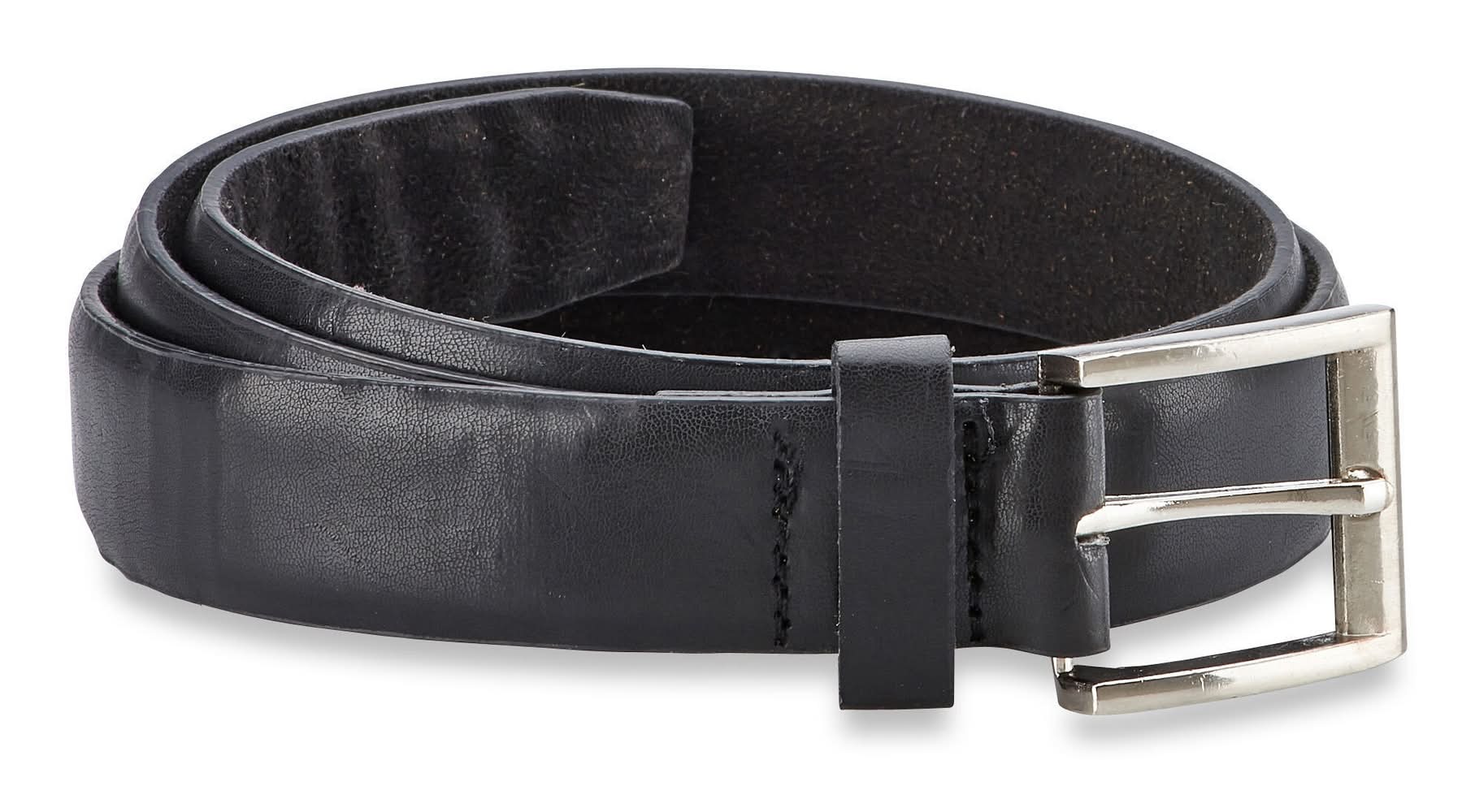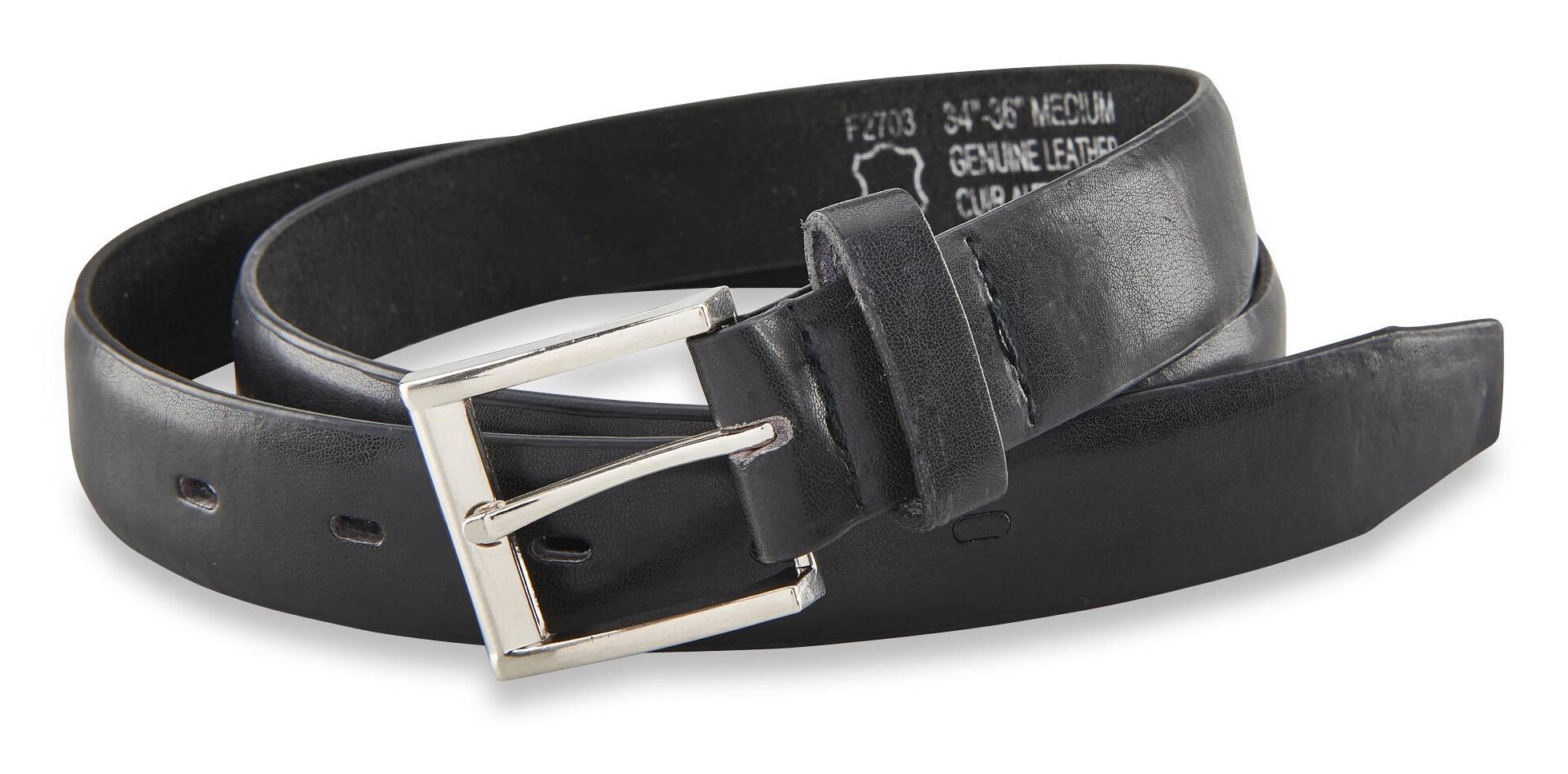 Men's Leather Belt With Basic Silver Hardware, S, Black