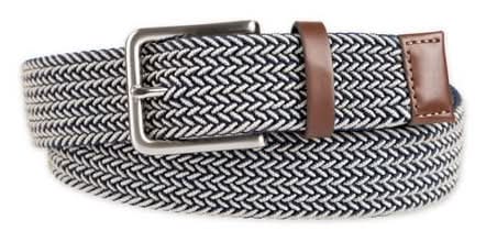 Haggar Tailored Flex 35mm Stretch Fabric Braid With Faux Leather Trim Belt, Men, M, Navy/Khaki