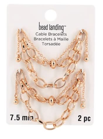 Bead Landing Cable Slider Charm Bracelets, 7.5 mm, Gold (2 ct)