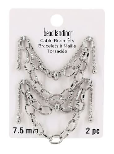 Bead Landing Rhodium Cable Slider Charm Bracelets, 7.5 mm (2 ct)