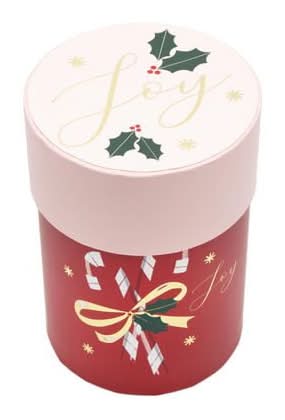 Holiday Time Candy Cane Round Candle Gift Box, 4” X 4”, Red