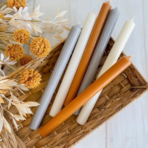 Linen Chest Candles, 10 inch, White-Orange-Grey (6 ct)