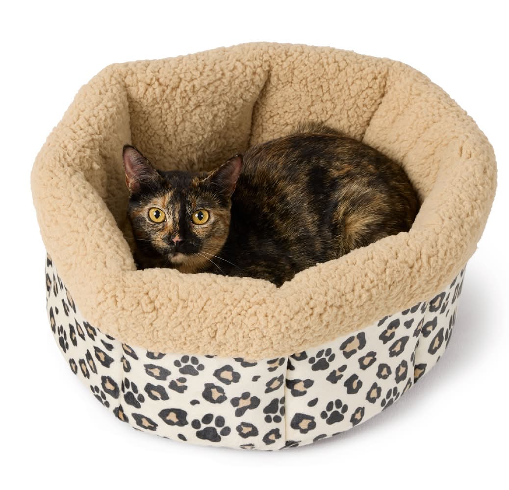 Essentials Round Leopard Print Cuddler Cat Bed